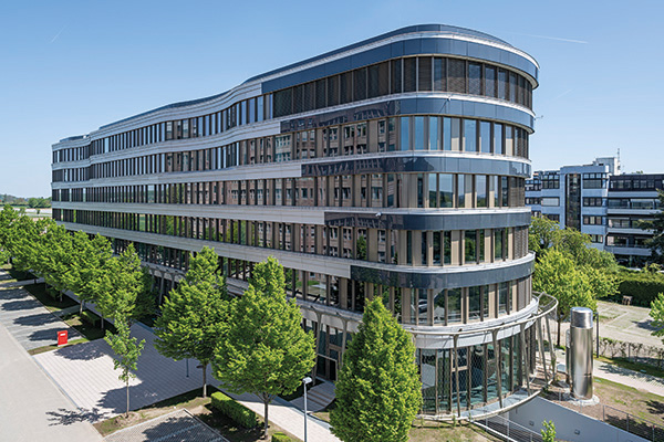 Für die oberen Stockwerke wurde ein weiteres hochmodernes Sonnenschutz-Isolierglas verbaut – INFRASTOP® Neutral III 63/39. Mit einer Lichtdurchlässigkeit von 66% und einer sehr niedrigen Reflexion sorgt es für optimale Tageslichtverhältnisse in den Büros und steigert damit das Wohlbefinden der Mitarbeiter. Die adaptive Steuerung des Sonnenlichteinfalls erfolgt über außenliegende Lamellenraffstores, während innenliegende Rollos für einen blendfreien Arbeitsplatz sorgen. Diese intelligente Kombination aus Sonnenschutzverglasung und automatisierter Steuerung hilft, die Energieeffizienz des Gebäudes auf einem hohen Niveau zu halten.